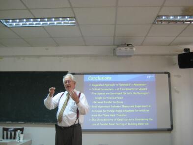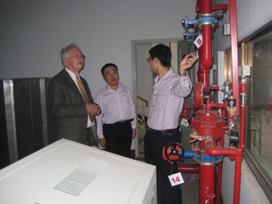 9月27日-28日美国FM Global机构资深研究员John L. de Ris博士来实验中心交流、指导,中心朱顺兵高工、消防研究所尤飞所长陪同考察。