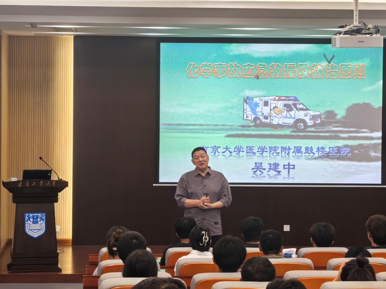 为积极响应江苏省“全国科普月”号召,全面提升师生对化学事故的认知水平与应急处置能力,9月25日下午,由安全科学与工程学院主办的“安全大讲堂”第四十六讲在立德楼报告厅顺利举行。讲座邀请了南京鼓楼医院主任医师、东部战区江苏陆军预备役高炮一师师医院副院长(上校军衔)、江苏省突发公共事件卫生应急救援化学中毒处置专家组组长吴建中教授做主题报告。讲座由安全学院副院长王静虹主持,学院教师、研究生及本科生代表160余人参加讲座。