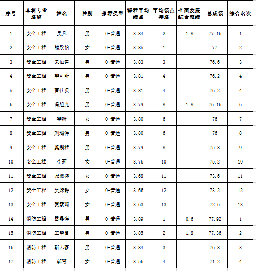按照教育部及教育厅推免工作相关文件要求,根据南京工业大学《关于做好2024年推荐优秀应届本科毕业生免试攻读硕士学位研究生工作的通知》精神,我院2024年推荐免试研究生工作经本人书面申请、学院推荐工作小组全面审查、综合考核,现将推荐免试攻读硕士学位的名单公示如下: