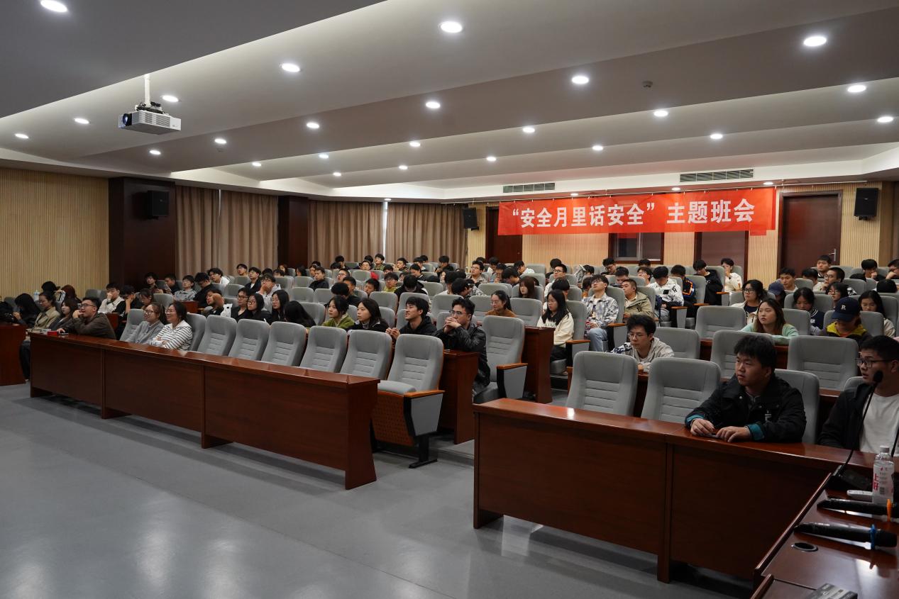 为保障同学们的学习与生活,实现“人人讲安全、个个会应急”的校园安全目标,安全科学与工程学院研究生会于10月19日在立德楼报告厅开展“安全月里话安全”主题班会,学院实验中心刘阳老师、研究生辅导员孔德军老师以及全体2025级研究生参加本次活动,活动由陈建鹏主持。