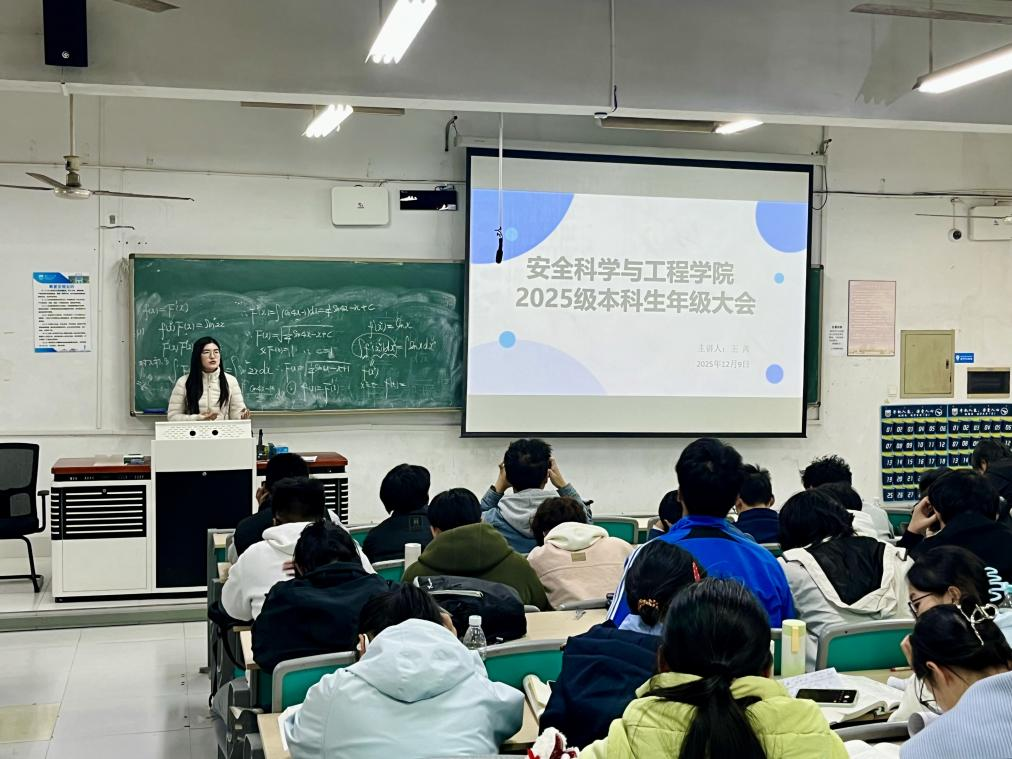 立德树人,培根铸魂。为进一步强化学风建设、规范日常行为,安全科学与工程学院于12月9日召开2025级新生年级大会。本次大会由辅导员王茜老师主持,2025级全体本科生参会。