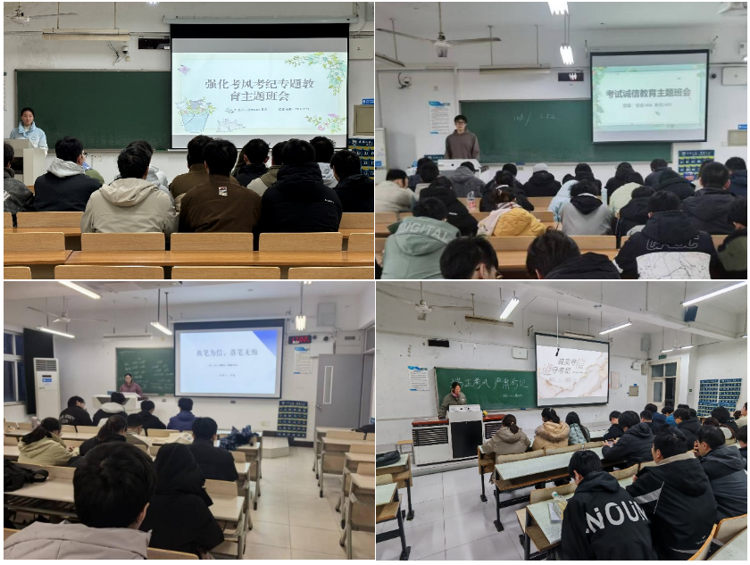 活动中,各班学习委员结合期末备考关键节点,深入分析班级学风现状,针对性提出复习规划、学业提升等指导建议。同学们集中学习《南京工业大学学生纪律处分规定》中关于考试违纪的相关条款。通过典型案例剖析与违纪后果解读,大家进一步明确了考试纪律的红线,强化了规则意识与敬畏之心。最后,全体学生郑重签署《诚信考试承诺书》,庄严承诺自觉遵守考场纪律,坚决抵制舞弊行为,以诚信态度践行求学初心。